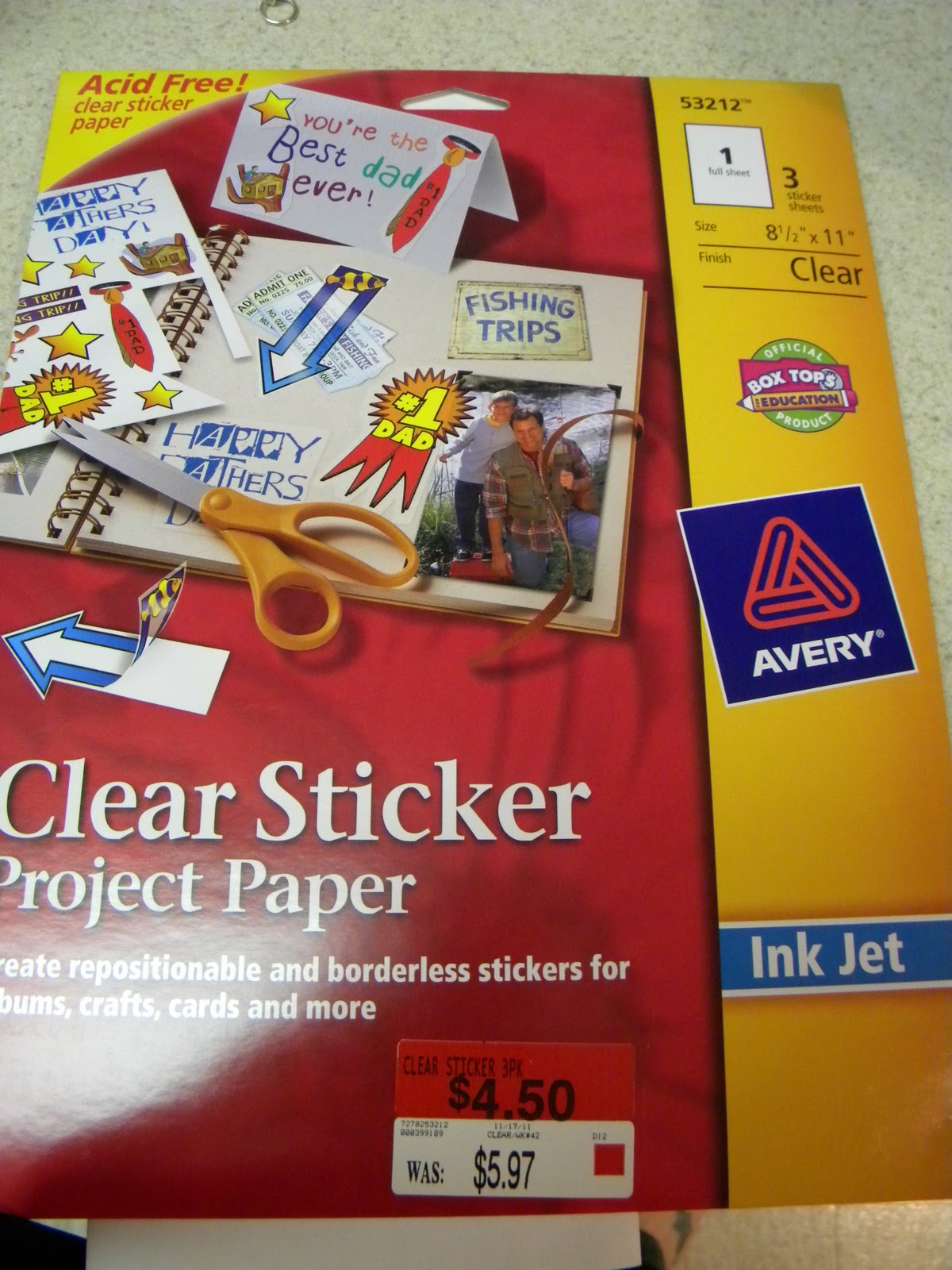 -Clear sticker paper (I found this onsale at Walmart, 8.5x11 sheets by Avery)