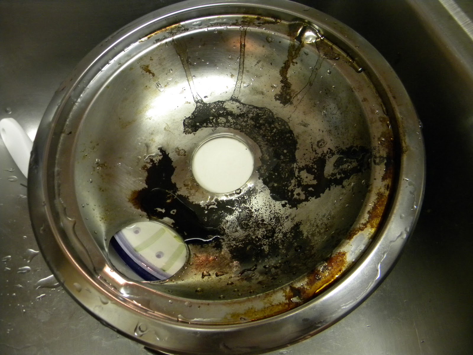 I have found this blog for WD-40 but am nervous to use it given drip pans are where the heat is applied and something about the combination of noxious fumes and chemicals around my food just doesn't sit well with me. If it is a last resort thought, I will try it, even if it is just to throw the pan out when I'm done.